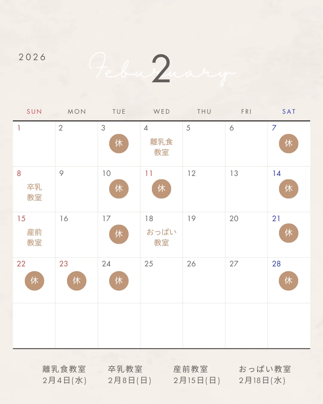相談室で授乳もしていただきますので、約1時間くらいかかります。